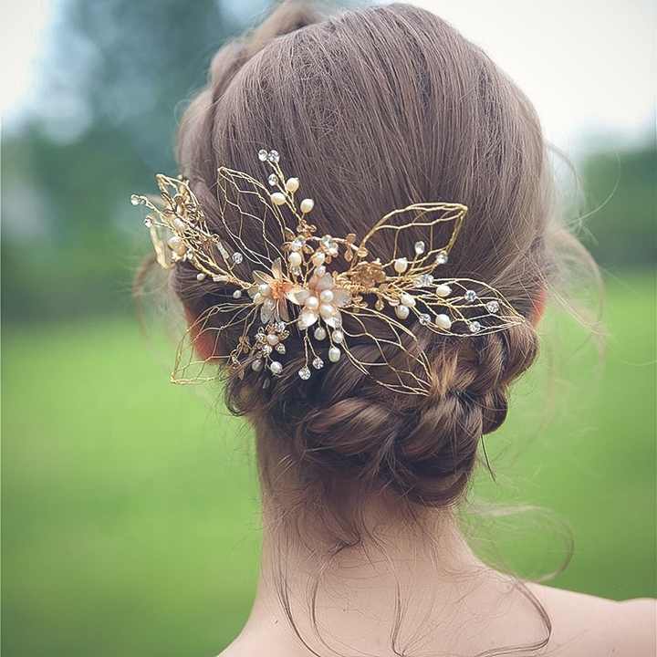 Wholesale 2020 Luxury Flower Gold Leaf Handmade Hair Accessories Crystal Rhinestone Bridal Wedding Freshwater Pearl Hair Comb From M Alibaba Com
